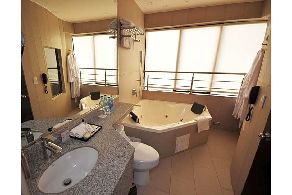 This suite's special feature is the hot tub. Featuring a private entrance, this air-conditioned suite consists of 1 living room, 1 separate bedroom and 1 bathroom with a bath and a shower. The suite's kitchenette, which has a refrigerator and an electric kettle, is available for cooking and storing food. This wheelchair accessible suite features a mini-bar, a seating area with a flat-screen TV and a roll-in shower. The unit offers 1 bed.